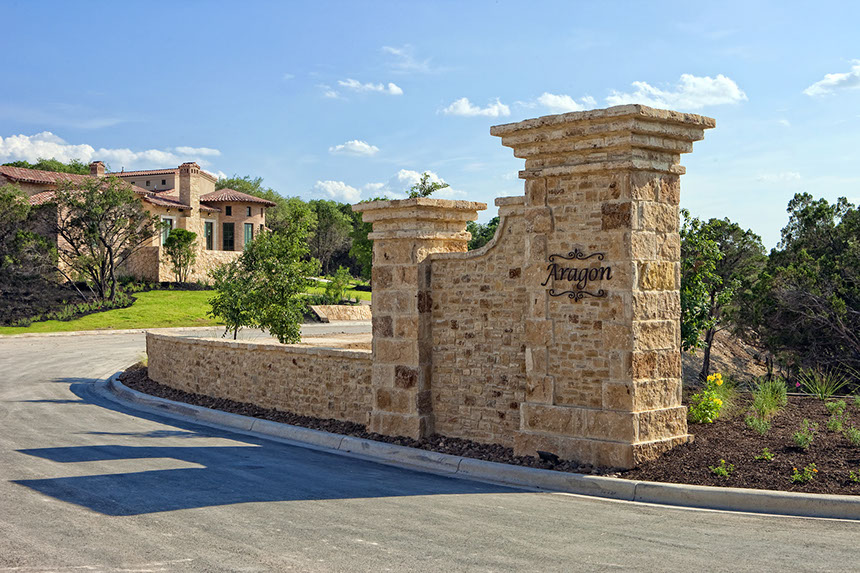 Hillside development comprising of 49 lots averaging 0.5 acres. This offers residents some nice views of the Hill Country and the Dominion. Aragon was the site of the 2012 and 2014 Parades of Homes organized by the Greater San Antonio Builders Association (GSABA).